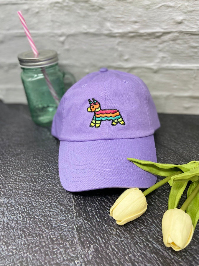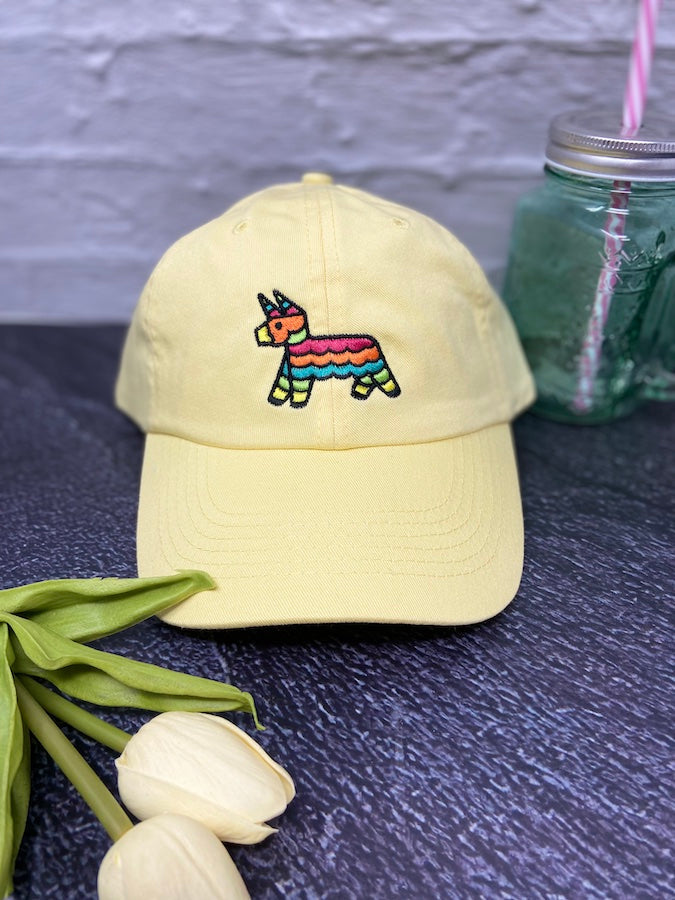 Colored hats feature a fun, ready to party piñata!
